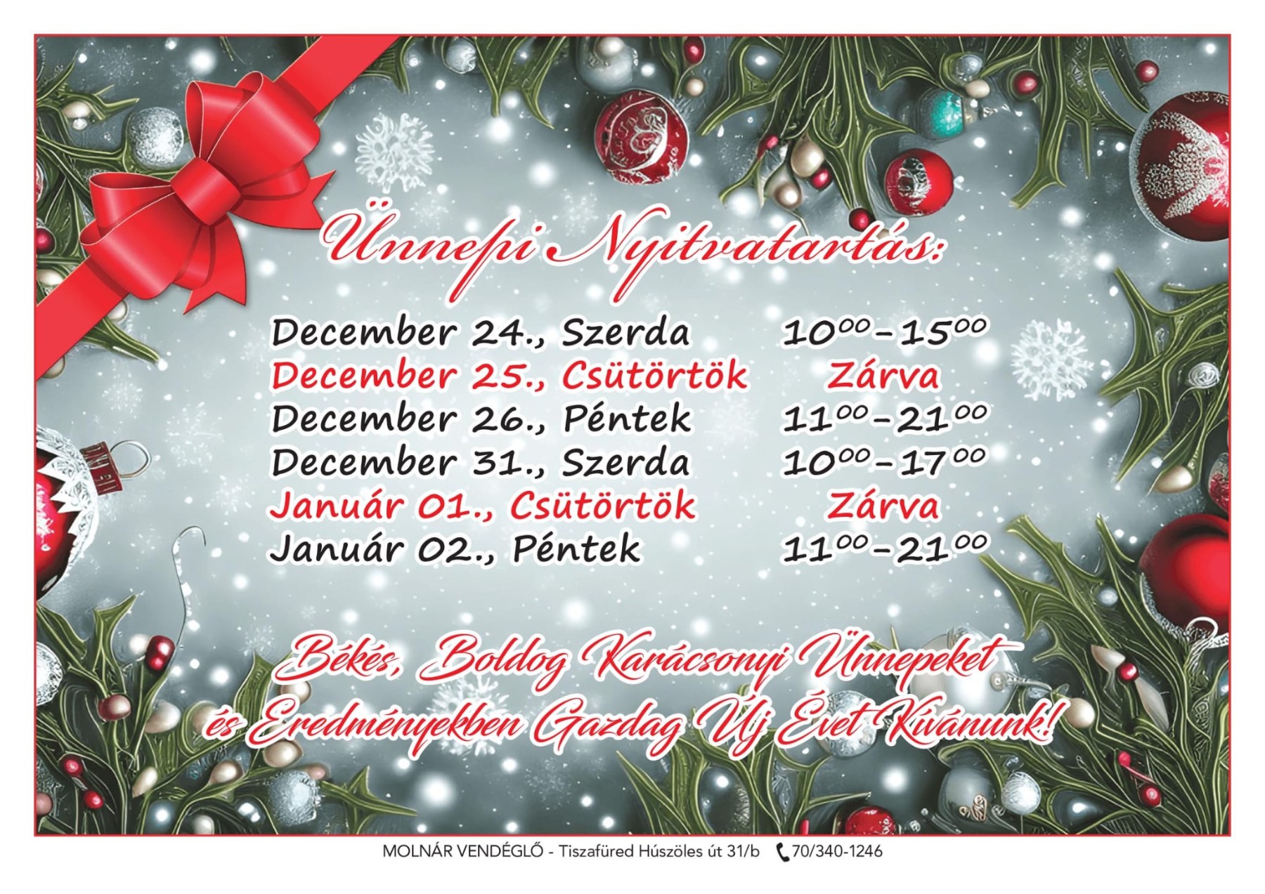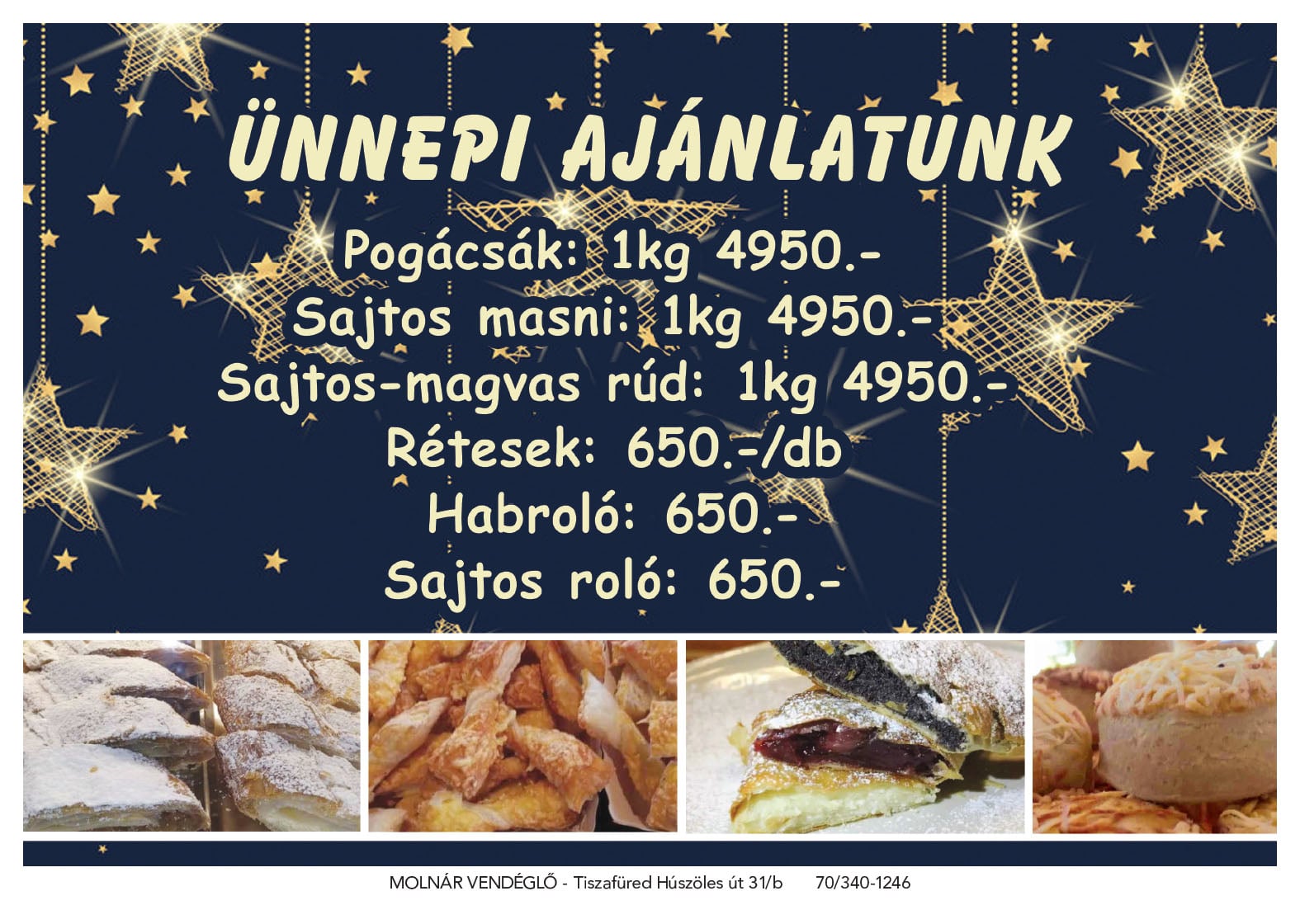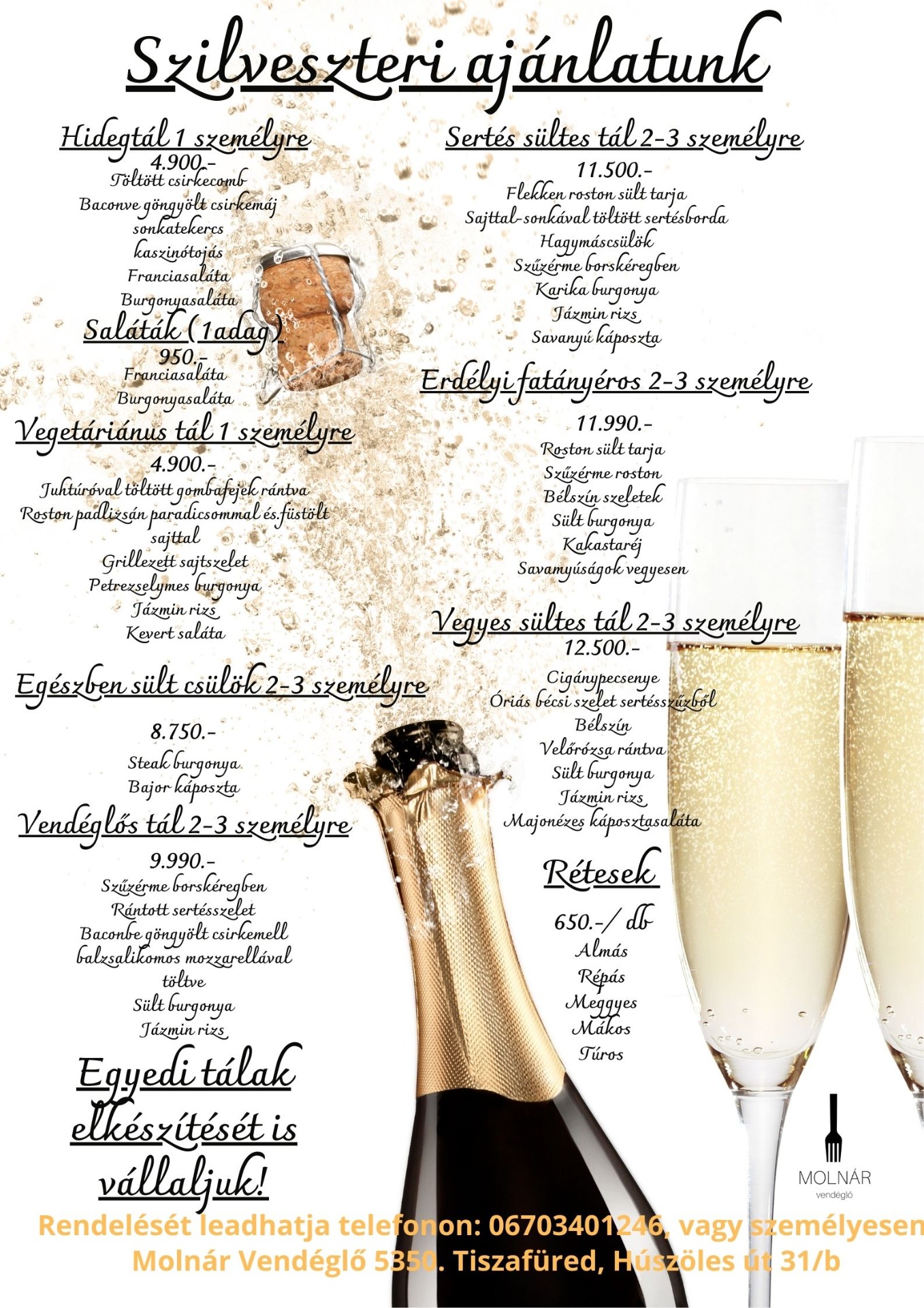 A Molnár Vendéglő szilveszteri ajánlatával garantált a bőséges, házias és ünnepi vacsora. 🍽️