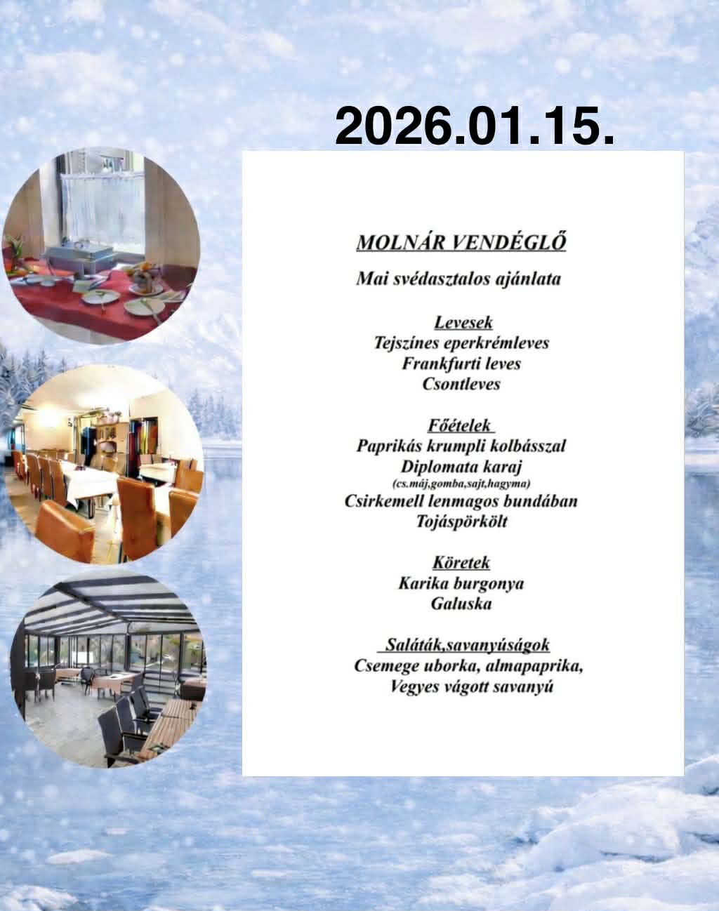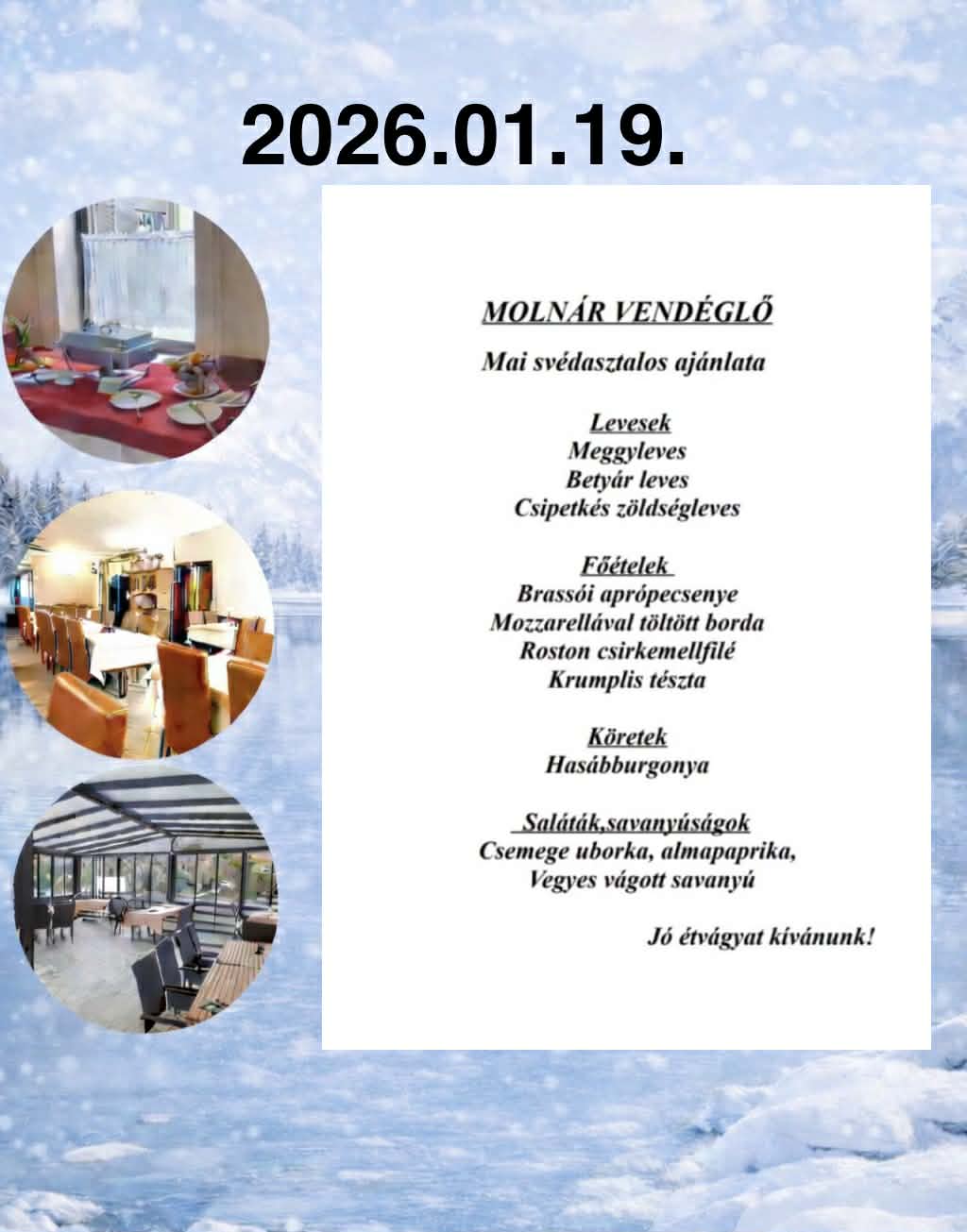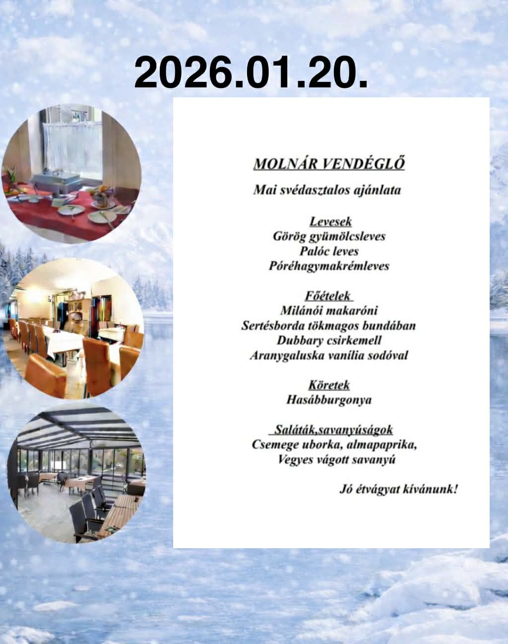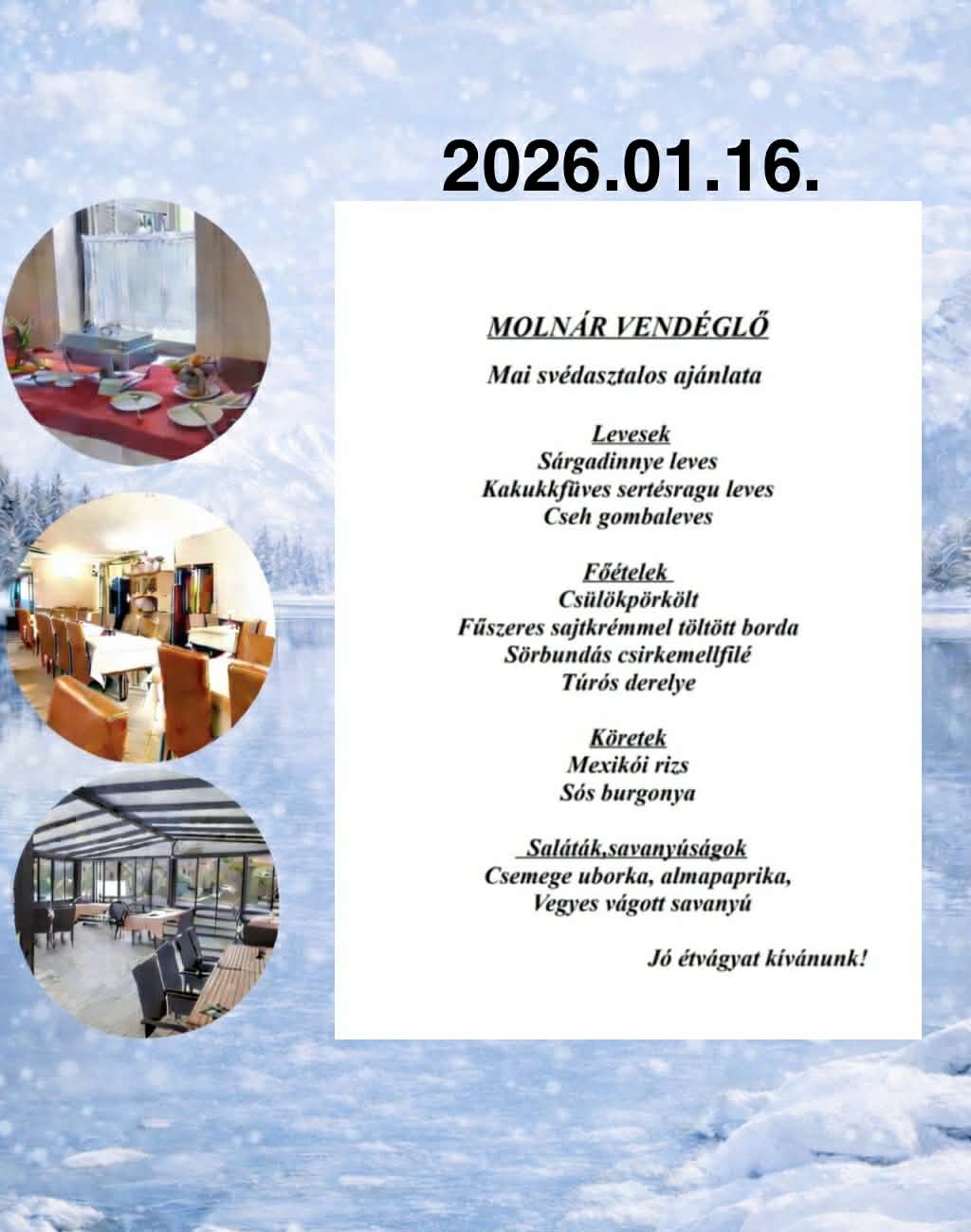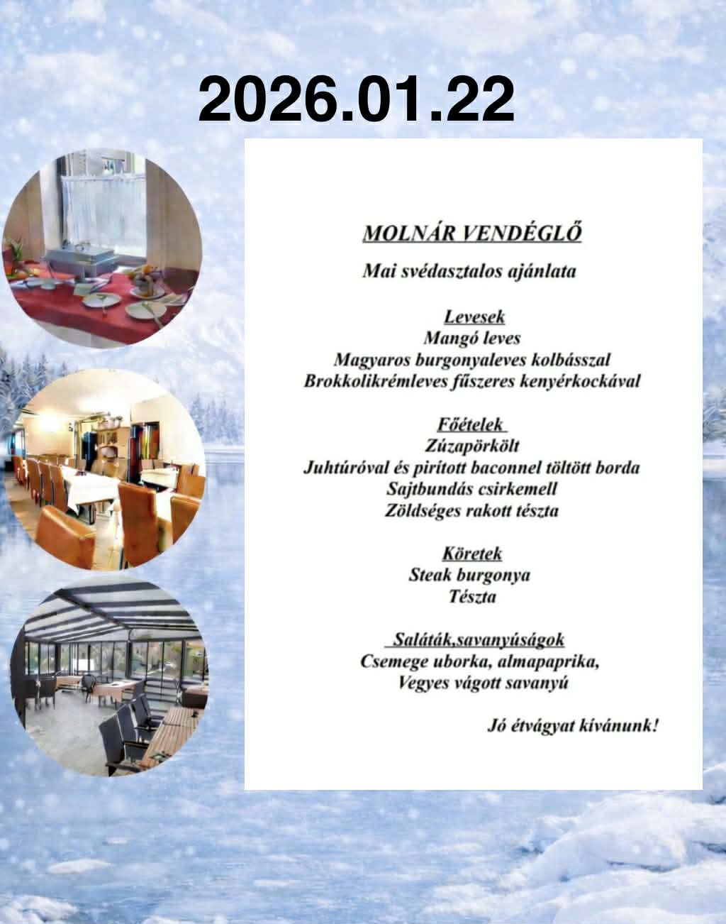 - Svédasztalos ebédlehetőség