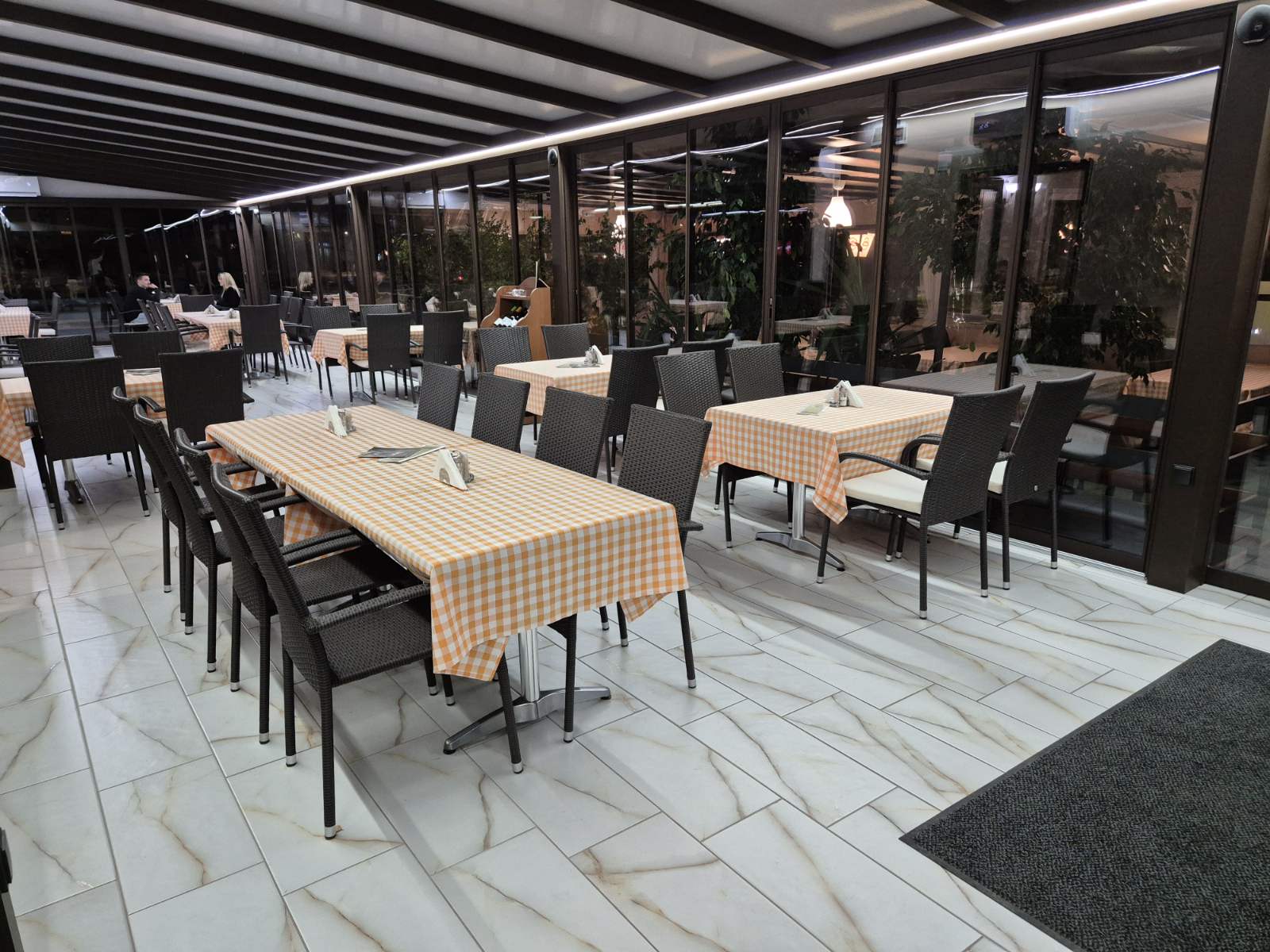 Éttermünk belső része nemrég teljes felújításon esett át, de egy fülledt nyári napon jól esik a szellős zöld teraszunkon egy finom étel, vagy ital